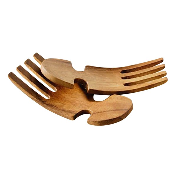 Premier Housewares Salad Servers Acacia Wooden Fork Brown Wooden Salad Servers Salad Serving Wooden Tongs Fork H 1x W19 x D 8cm