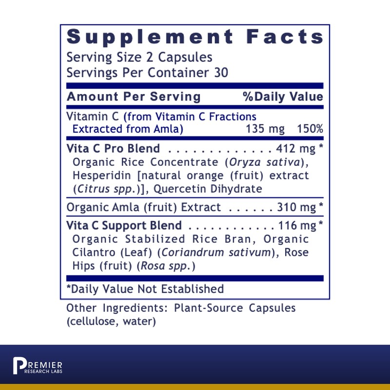 Premier Research Labs Vitamin C - Vitamin C Formula for Optimal Immune Health Support - Vegan, Non-GMO - 60 Plant-Source Capsules (30 Servings)