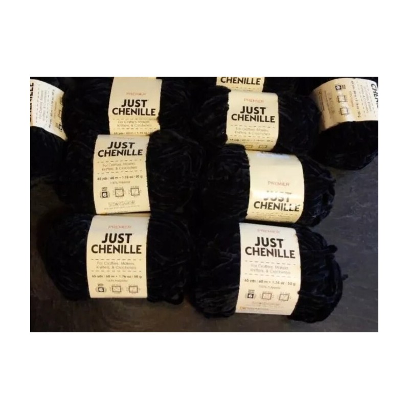 Premier Yarns 6 Skeins Premier Just Chenille Chunky Yarn ,BLACK color