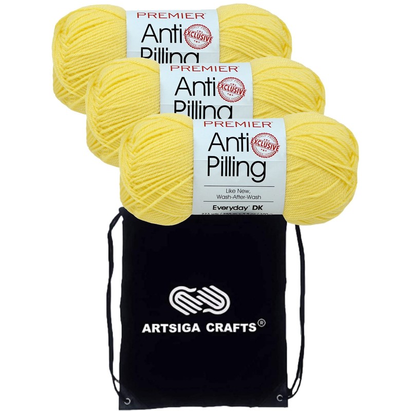 - Includes a 3-Pack Premier Anti-Pilling Everyday DK Solids Yellow with 1 Craft Project Bag; A perfect yarn for all kniting and crocheting