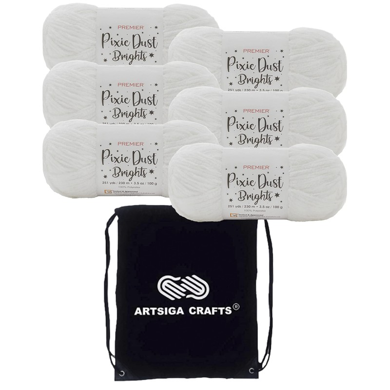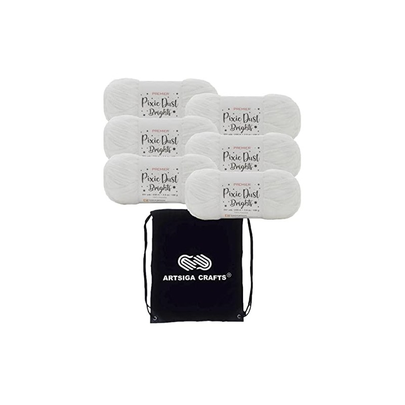 • Bundle includes a 6-Pack Premier Pixie Dust Brights White Bundle with 1 Artsiga Crafts Travel Project Bag; A perfect yarn for all kniting and crocheting