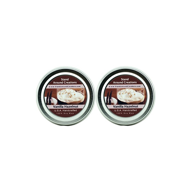 Premium 100% All Natural Soy Candles Set of 2-2oz. Vanilla Hazelnut: A mouthwatering Blend of Toasted Hazelnuts and Creamy Vanilla. Naturally Strong, Highly Scented.