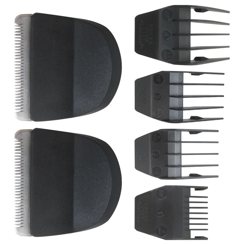Package Includes: 2pcs Clipper/Trimmer Blades, 4pcs attachment comb cutting guides as pictured.