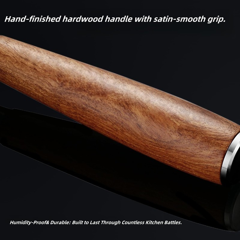 - 【Premium Solid Wood Handle】The handle is made from high-quality solid wood, providing a comfortable grip and stable hold. Designed with ergonomics in mind, it enhances your cooking experience while adding a touch of warmth. Additionally, the solid wood is easy to clean, helping to prevent bacterial growth and maintain a cleaner kitchen.