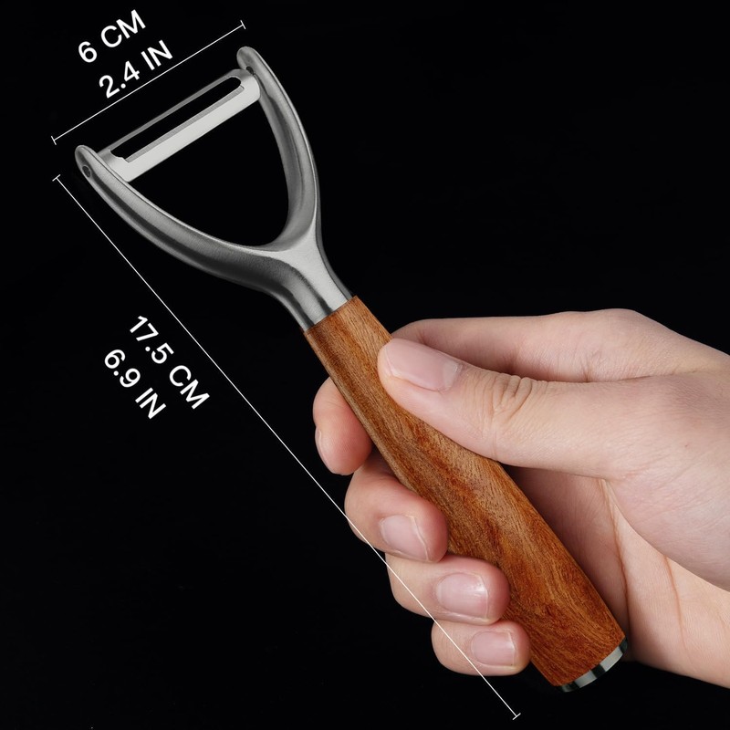 - 【Durable and Razor-Sharp Blade】Made from high-quality 304 stainless steel, the rotating blade of this peeler is engineered for strength and exceptional sharpness. This design guarantees a smooth and effortless peeling experience for a variety of fruits and vegetables.