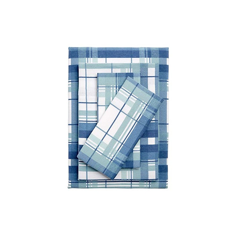 Premium 4pc Classic Farmhouse Checkered Blue Cotton Bed Sheets Set | All Seasons Comfortable Warm Cozy Smooth Soft Plaid Bedding | Lightweight Washable Deep Pocket Flat Fitted Flannel Sheets Full Size