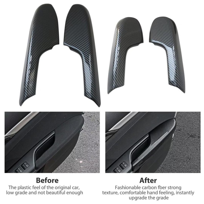 4 pcs Carbon Fiber Interior Door Armrest Panel Trim Cover