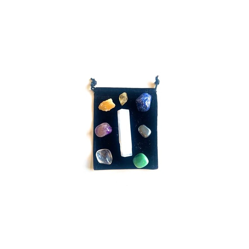 - CHAKRA ALIGNMENT: Set includes one stone for each of the seven major chakras + selenite stick and gift bag.