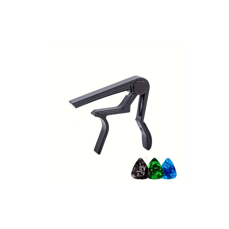 Premium Alloy Capo Quick Change Trigger Clamp for Guitar Banjo Ukulele with 3 Picks (Black)