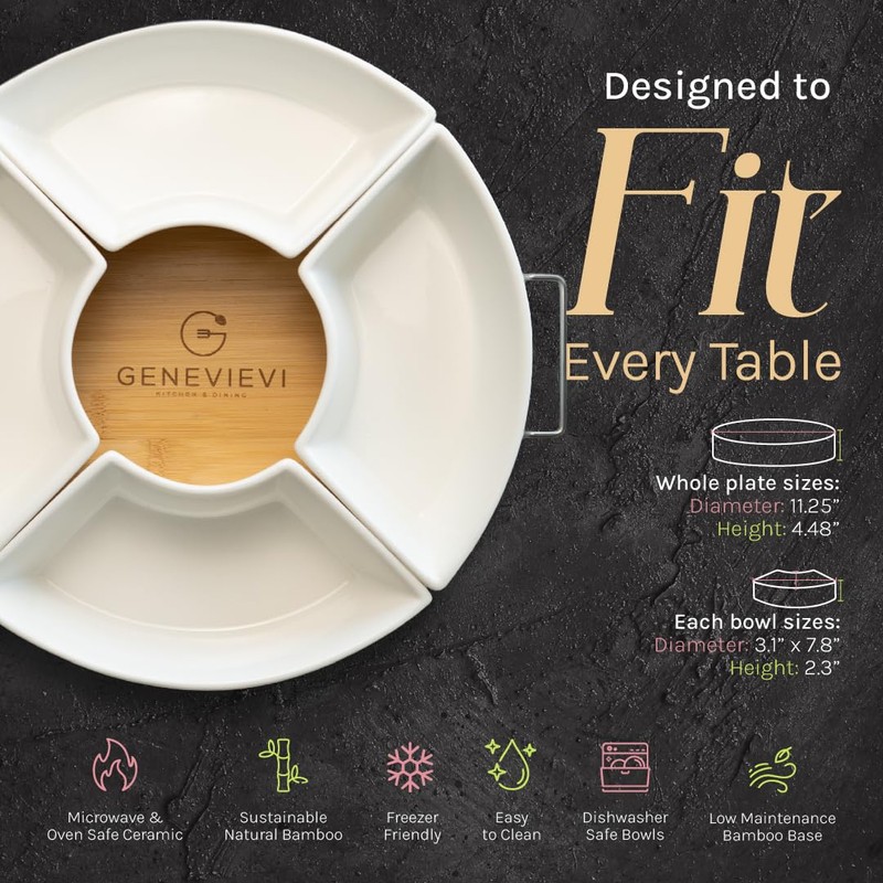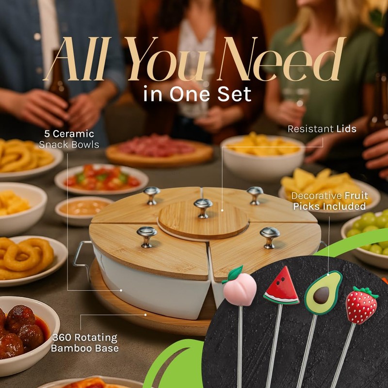- Convenient Lazy Susan Design: Spin and access all your snacks with this chip and dip set featuring a smooth-turning Lazy Susan base. Perfect for keeping snacks, dips, and sauces organized and easily accessible—perfect for entertaining!