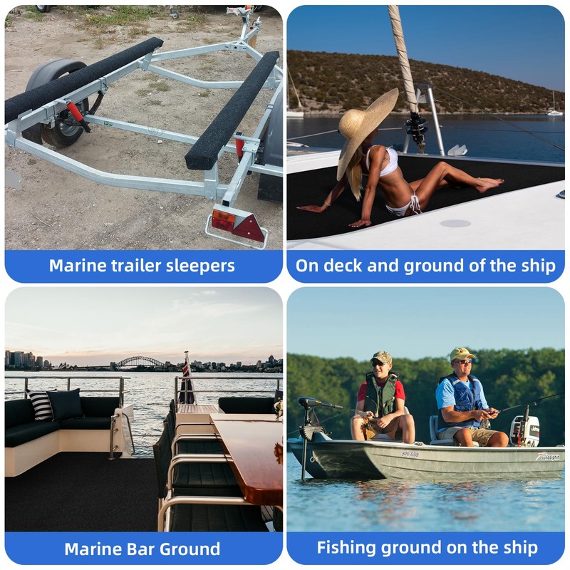 If you owned a beloved private boat, you need HBGOTL boat trailer bunk carpet when you need to move it with a trailer, our trailer bunk carpet can effectively protect your boat underside from scratching and abradingOur boat carpets are marine grade, they are more sturdy and durable than products from other brand, they weights 28 OZ per square meter, they can be used for longer time than 19 OZ marine carpet.Our boat carpets are UV resistant and quick-drying, they can be used for long time outside.Our marine carpet not only can be used as trailer bunk carpet but also can be used as boat carpet and van floor covering. They can also be used to cover floor on gazebo.