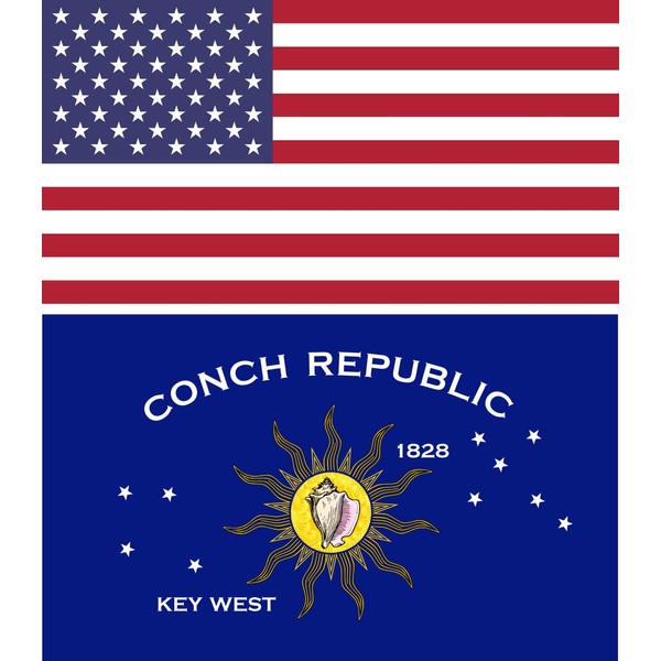 • ✔ SPECIFICATIONS - Made of 100% Nylon. The Conch Republic of Key West flag is approximately 3 ft. x 5 ft. (90cm x 150cm) in size, and the USA Stars and Stripes flag is approximately 4 ft. x 6 ft. (120cm x 180cm) in size. These flags are compatible for both indoor and outdoor use. The image will be reversed on the backside of the Conch Republic flag. These flags are brand new and mailed to you in sealed plastic. Pole not included.