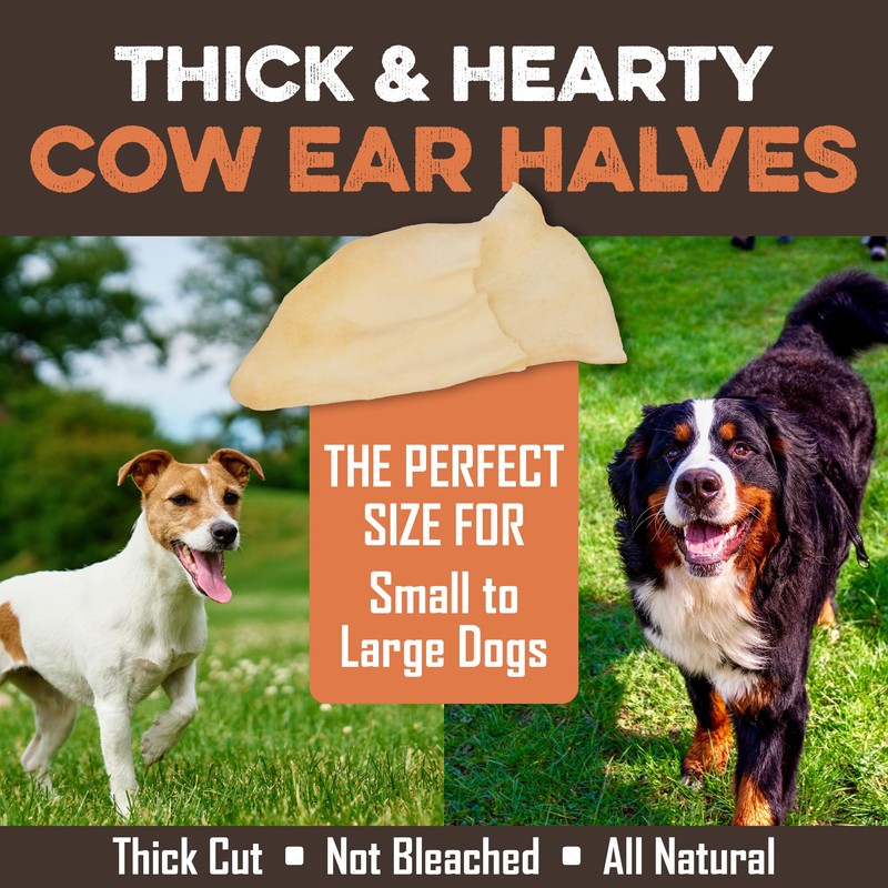 Premium Cow Ears For Dogs, Thick Cut & All-Natural Half Ears, 100% Grass Fed Beef, No Additives Or Hormones, Safe Rawhide Alternative, Great Dog Treat Alternative To Pig Ears, Bully Sticks, Dog Bones