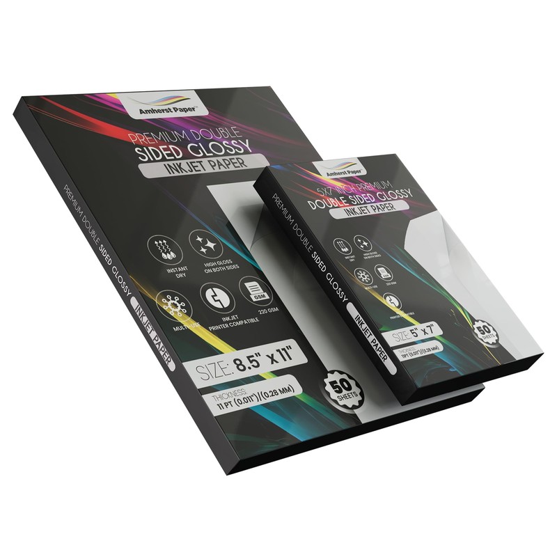 Premium Double Sided Glossy Inkjet Paper, 8.5" x 11" and 5" x 7", 220 GSM, 50 Sheets Each (8.5 x 11)