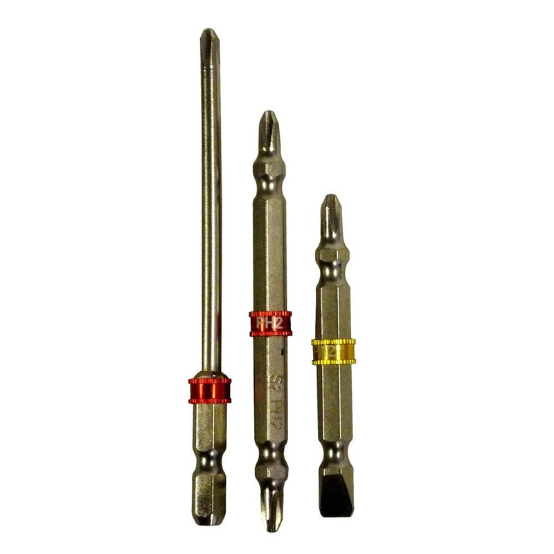 - Set Contents: [Single head screwdriver bit with steps: 0.25 inch (6.35 mm) square: 3.9 inch (100 mm) (+) No.2 x (+) No.2/65 mm (+) No.2 x (-) 0.25 inch (85 mm) (0.39 inch (10 mm), [HSS steel titanium coated hexagonal drill blade. 0, 2.5 , 3.0, 3.5mm