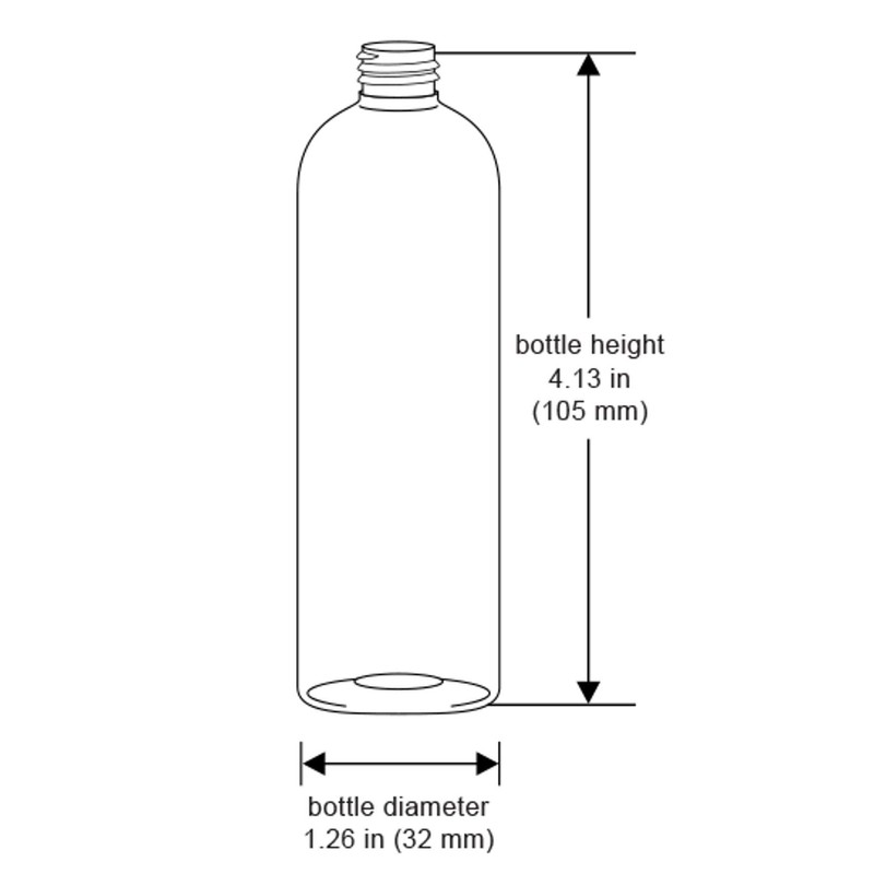 - Bottle capacity is 2 ounces (60ml). Bottle height: 4.13" (105 mm). Bottle diameter: 1.26" (32 mm).