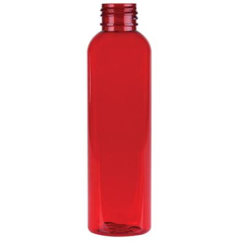 Premium Essential Oil 4 Ounce Cosmo Round Bottles, PET Plastic Empty Refillable BPA-Free, with Black Ribbed Lined Non-Dispensing Caps (Pack of 12) (Red)