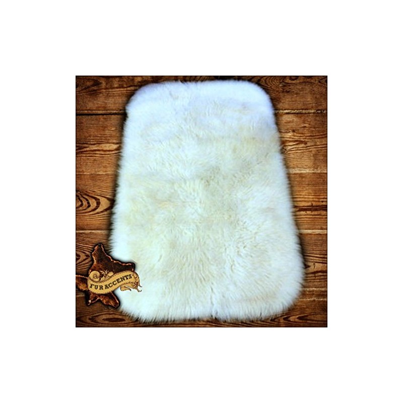 Premium Faux Sheepskin Accent Rug/Runner/Off White/You Pick You the Size You Want/Rectangle with Rounded Corners/New (Bright White, 2'x4')