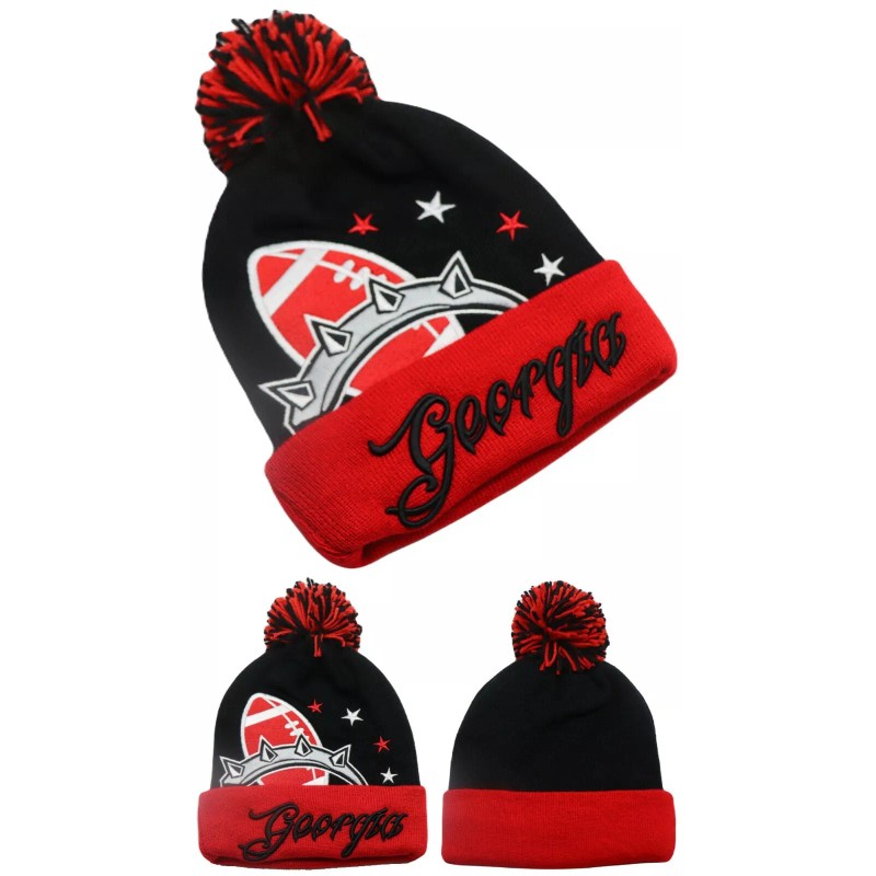 Premium Georgia New Leader Colossal Dog Collar Black Red Era Beanie Knit Hat Cap
