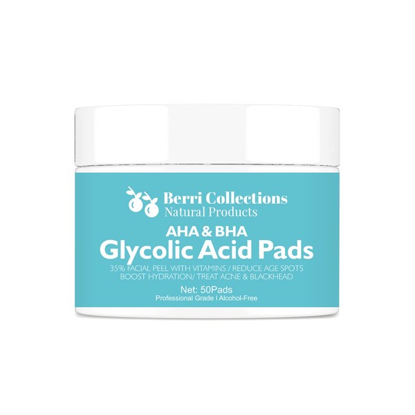 Premium Glycolic Acid Peel Pads 35% AHA for Dark Spots, Acne Scars, Skin Texture Improvement, Anti Aging- Reduce Age-Spots with Vitamin B5, Vitamin C, Vitamin E, Exfoliating Pads for Face - 50 Count