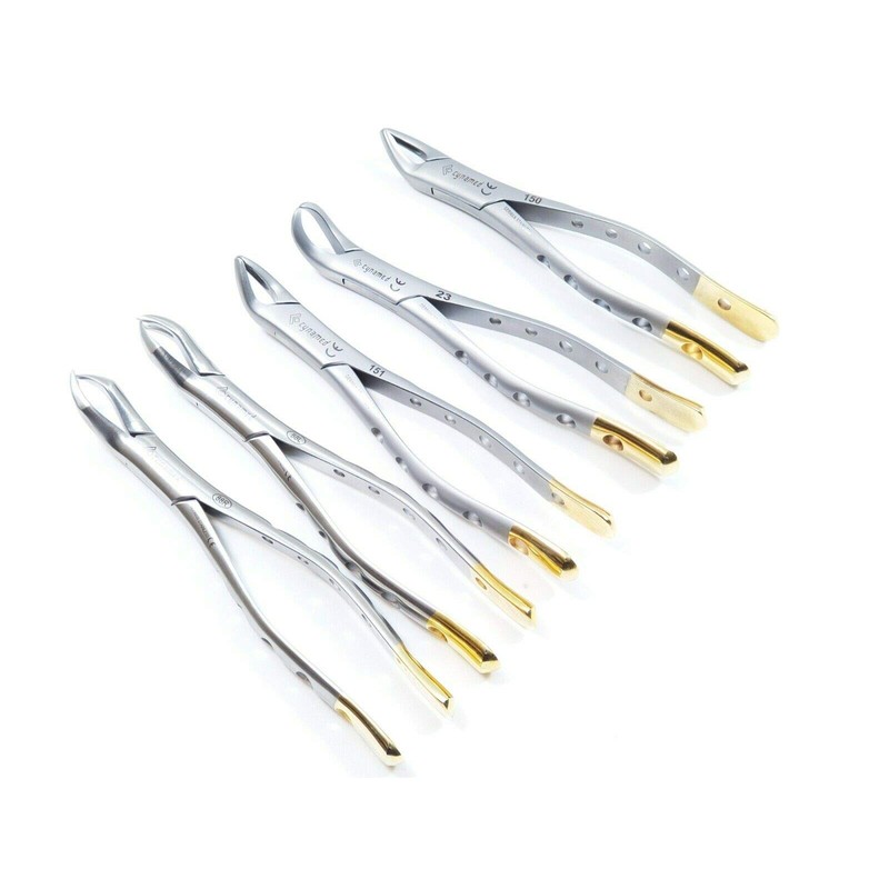 Premium Gold German Dental EXTRACTING Extraction Forceps # 150+151+23+88L+88R-Most Famous Set of 5 (CYNAMED)