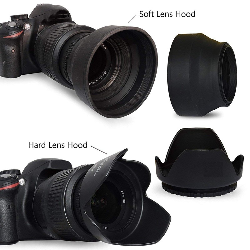 • RUBBER LENS HOOD. HARD LENS HOOD. HD UV-CPL-FLD FILTER KIT. MINI TRIPOD AND CLEANING ACCESORIES