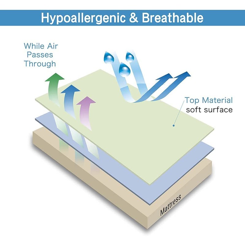 - [Soft and Breathable] The soft and waterproof surface is made with cotton terry fabric that preserves the softness, cozy, and noiseless sleep. The backing membrane is laminated with TPU film making is breathable and allows for great air circulation.