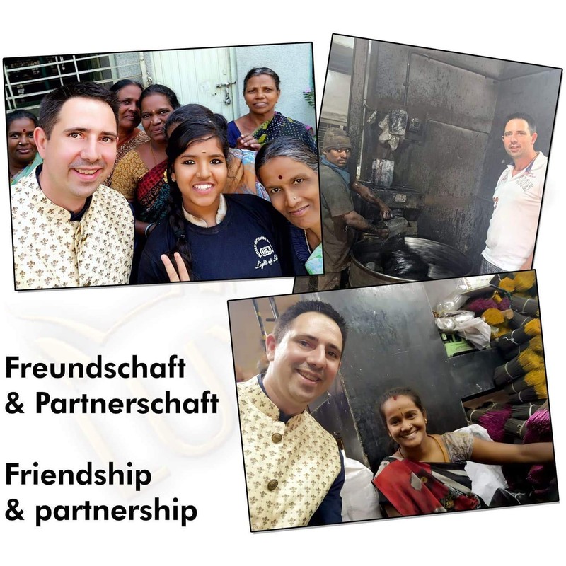 We visit our partners regularly and develop our incense sticks together. In recent years, a friendly or almost family relationship with many people at the production sites has emerged.