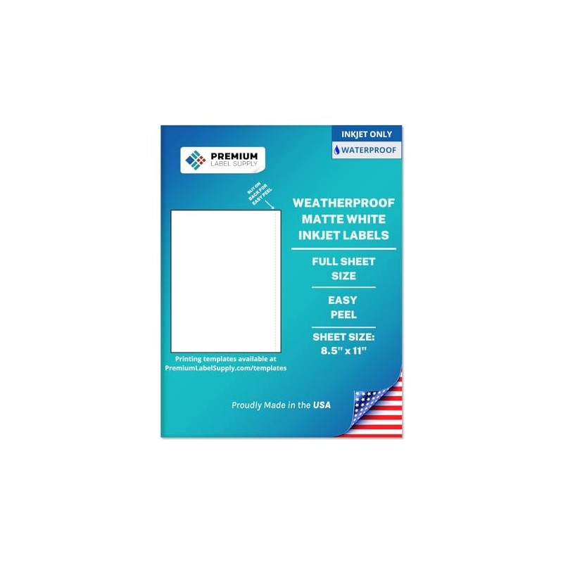 Premium Label Supply Waterproof Matte White Full Sheet Shipping Labels – 8.5" x 11" – Inkjet Printers Only – 10 Sheets