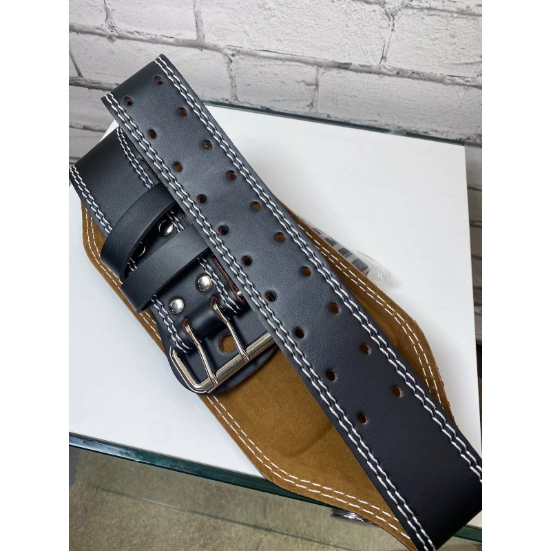 Premium Leather black power lifting weight lifting belt for men or women. Double pin buckle and fully adjustable. The back portion is padded for comfort.