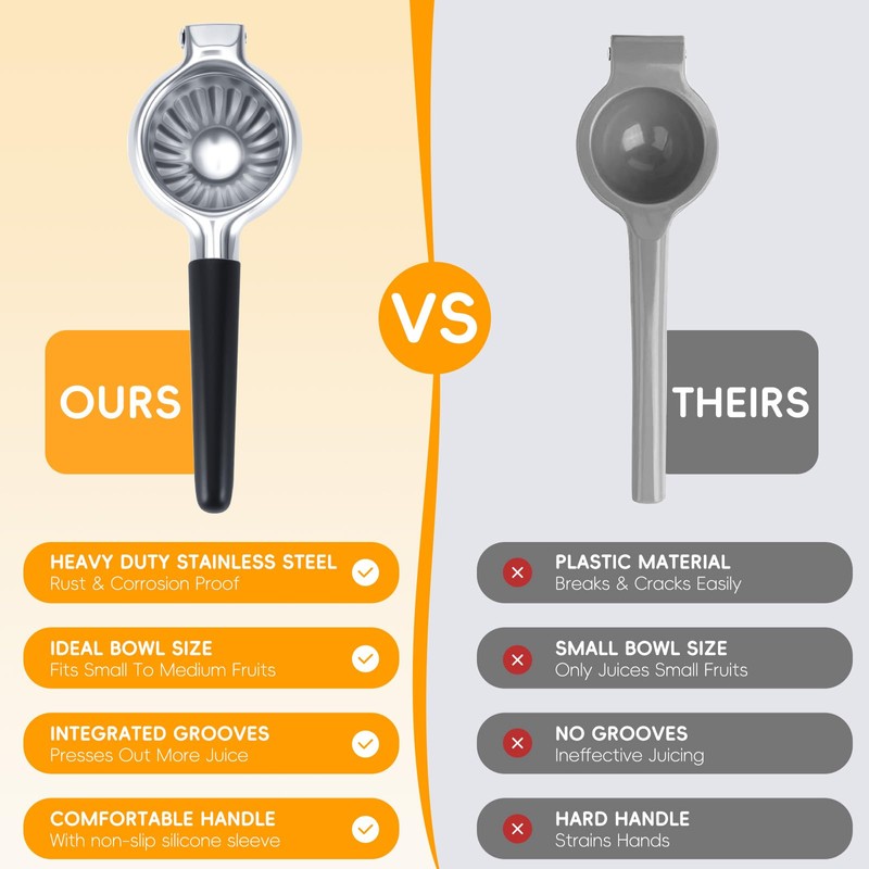 ✅ Maximize Juice Yield –pressure design crushes lemons/limes completely, ensuring up to 30% more juice than manual squeezing.