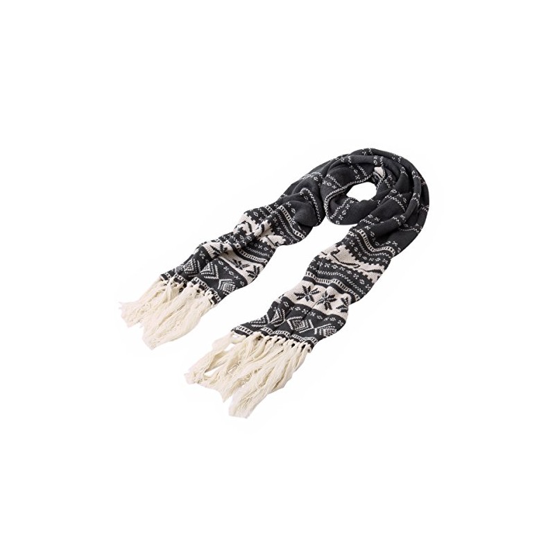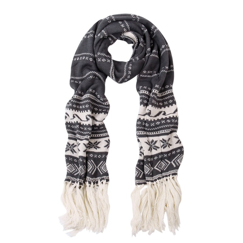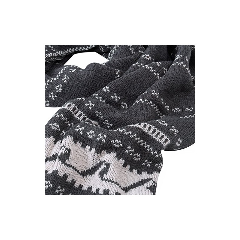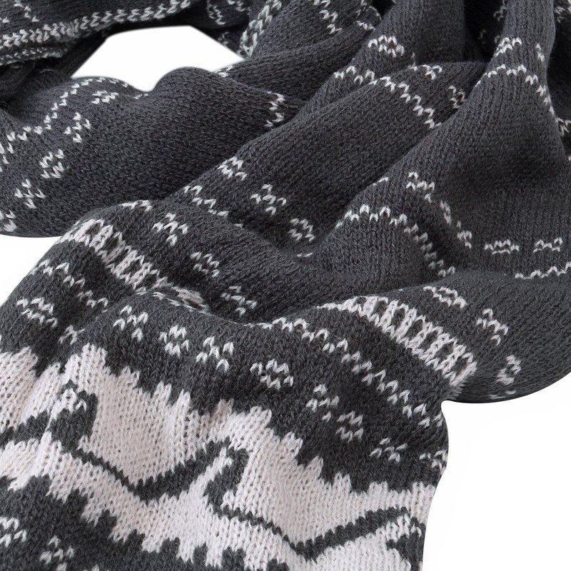 Premium Long Dual Tone Fair Isle Knit Warm Winter Fringe Scarf, Grey