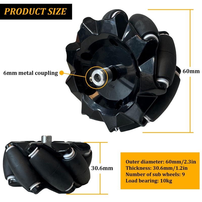 - WHAT YOU GET- After you get this mecanum wheels kit, you will get: mecanum wheel with diameter = 60mm *4pcs, 6mm couplings **4pcs. More details, please visit gitnova. We will provide online technology support 24hours/7days.Welcome to consult.