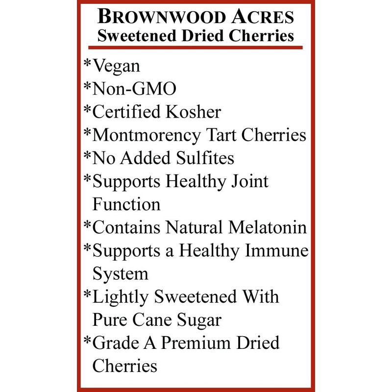 Premium Michigan Montmorency Dried Tart Cherries by Brownwood Acres - FruitFast | Slightly Sweetened - Non-GMO, Gluten Free, Kosher Certified All Natural Healthy Snack Alternative (1/2 Pound)