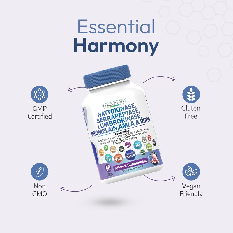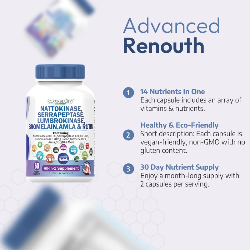 - 100% NATURAL, VETTED, TRUSTED INGREDIENTS: Enjoy all-natural, quality vitamins and ingredients Made in the USA and offered here at ClarinBeauty. With the benefits of coenzyme Q10, amla powder, with natto, good for oxygen and more not found in most other supplements. Order yours today.