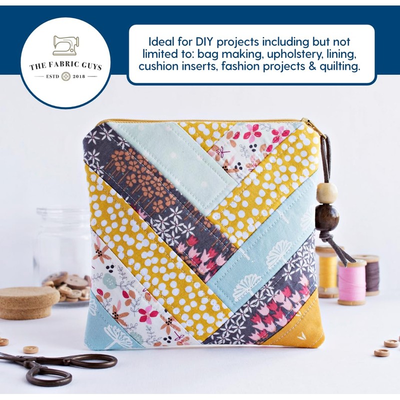 Our premium quality bag wadding batting is made from polyester material and is used to provide thickness, loft, and insulation in bags, cushions, blankets, garments, and other fabric-based items. It comes in 3mm thicknesses size, allowing for superior level of warmth and flexibility in the finished product. When working with this wadding, it is commonly sandwiched between layers of fabric and then stitched together to create a finished product. It provides structure, warmth, and a soft flexible feel to the finished product. The weight of this wadding is approximately 7 oz. which generally indicates a denser and thicker wadding that provides better insulation and padding. Due to its denser structure, this wadding is more durable and resistant to wear and tear compared to softer alternatives. It can withstand repeated use and maintain its shape over time.