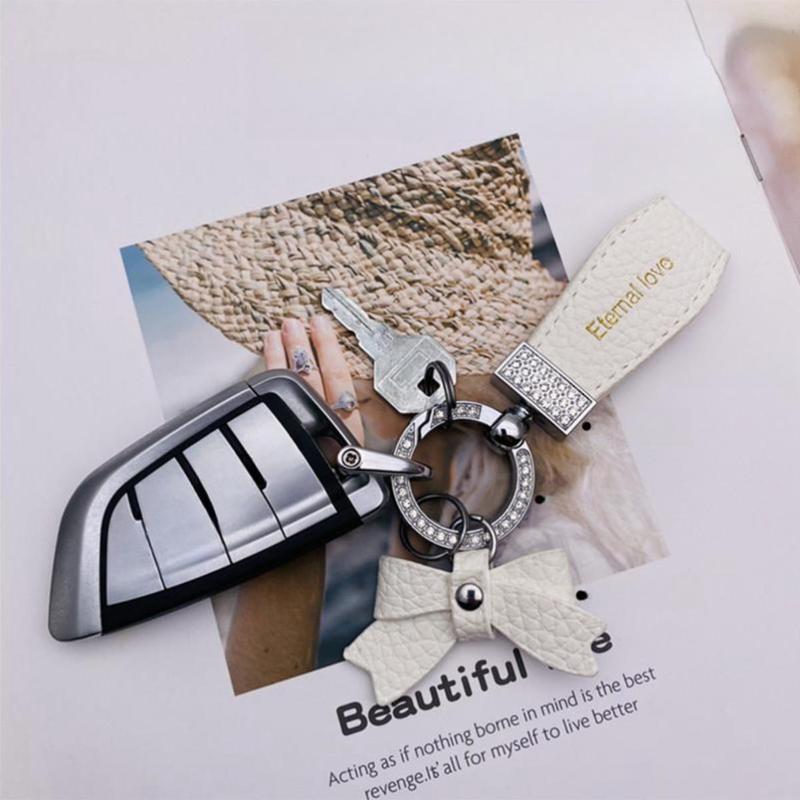 Premium PU Leather Bowknot Decor Car Keychain, Fashion Car Key Ring with Bow ...