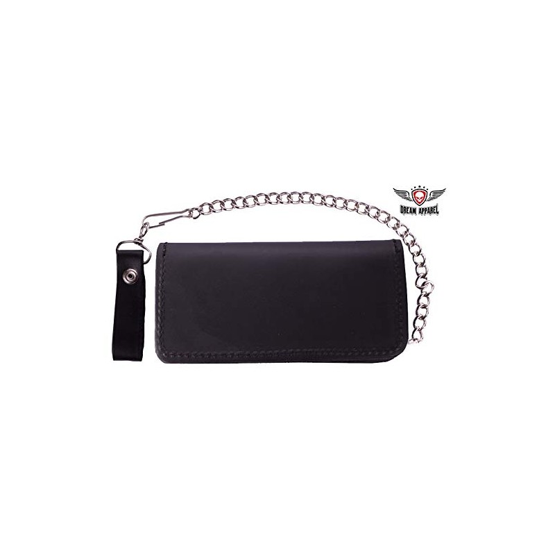 Premium Quality Black Leather Bifold Motorcycle Chain Wallet