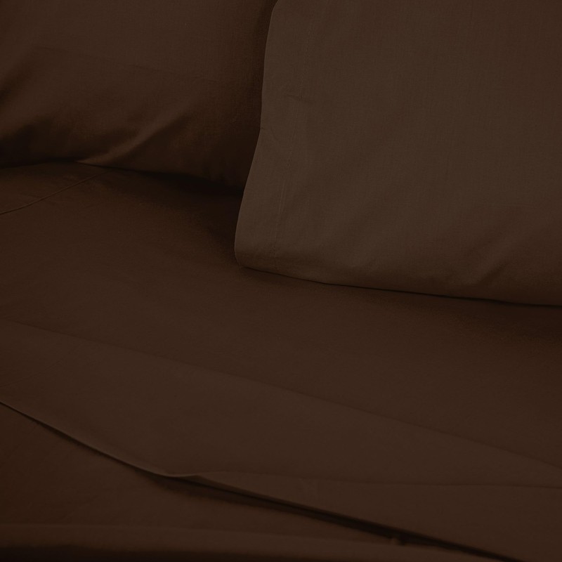 Premium Ranforce Double Fitted Sheet (140 x 190 + 30 cm) | 100% Cotton, 155 Thread Count, Dark Brown | Machine Washable at 30°C, Soft & Durable