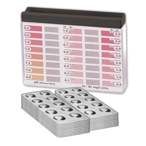 Premium Rapid Method Chlorine pH Water Tester with 200 Test Tablets, 100 x Phenol Red and 100 x DPD1, Display of 16 Different Measurements