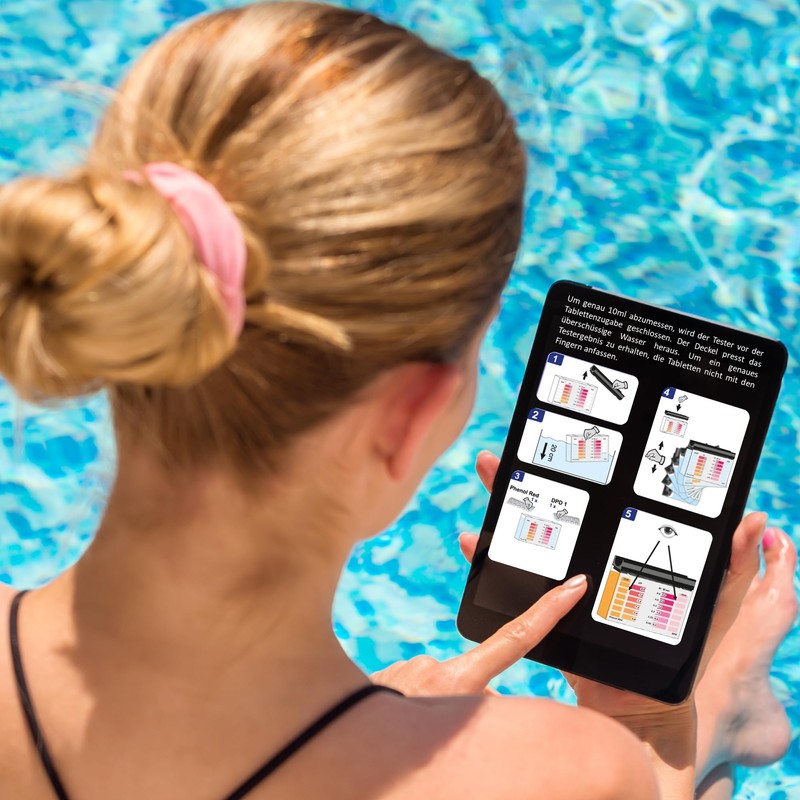 - Box contents: 1 x premium water tester with 100 x DPD N°1 and 100 x phenol red measuring tablets