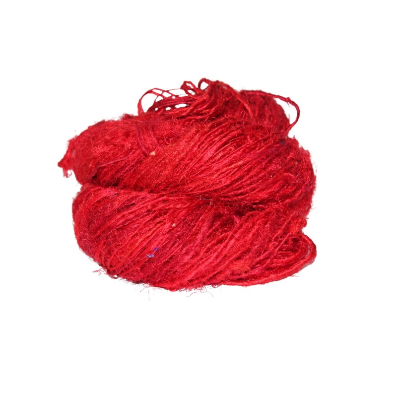 Premium Recycled Sari Silk Yarn - Red Shade 165 Yards | Good for Knitting, Crocheting and Jewelry Making