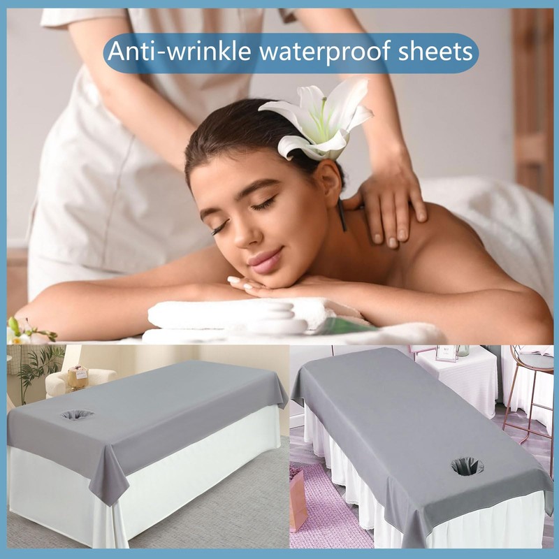 Premium Reusable Massage Table Sheets Bed Cover 47 x 90 Inches with Face Hole, Fitted Table for Master Massage, Waterproof and Oilproof, Stain and Wrinkle-Resistant, Machine Washable(Gray