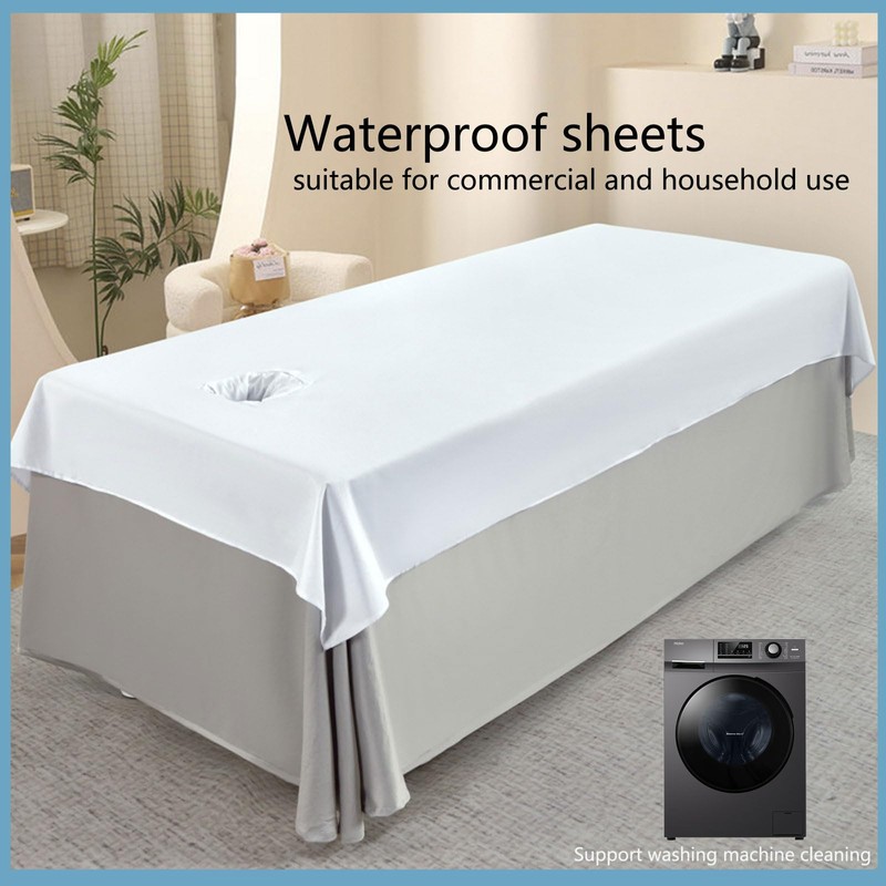 Premium Reusable Massage Table Sheets Bed Cover 47 x 90 Inches with Face Hole, Fitted Table for Master Massage, Waterproof and Oilproof, Stain and Wrinkle-Resistant, Machine Washable(White)