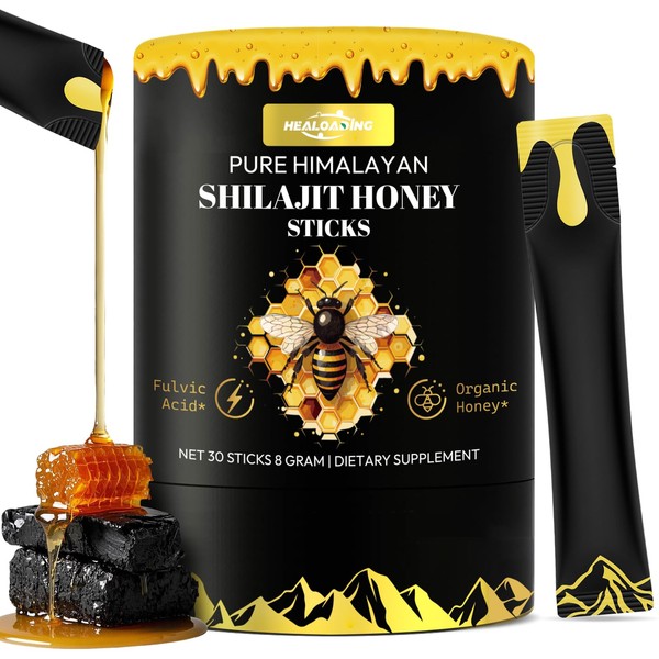 Himalayan Shilajit Honey Sticks for Men: Shilajit for Women with Organic Honey and Saffron 30 Sticks for Energy Boost & Immune Support, 85+ Trace Minerals, 75%+ Fulvic Acid