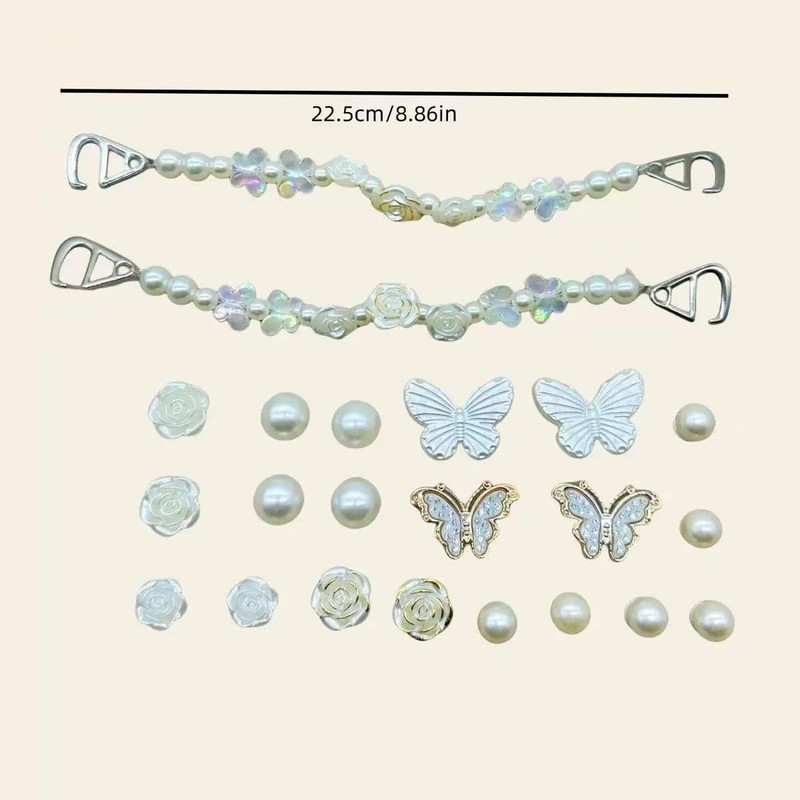 Premium Shoe Charms for Women 3D Floral & Butterfly Designs with Sparkling Rhinestones, Pearls & Crystal Links - DIY Shoe Jewelry Accessories for Girls, Creative and unique gifts (22 Pcs-pearls)