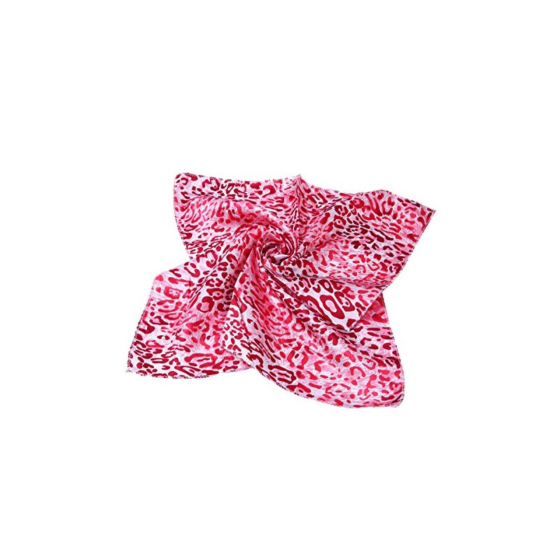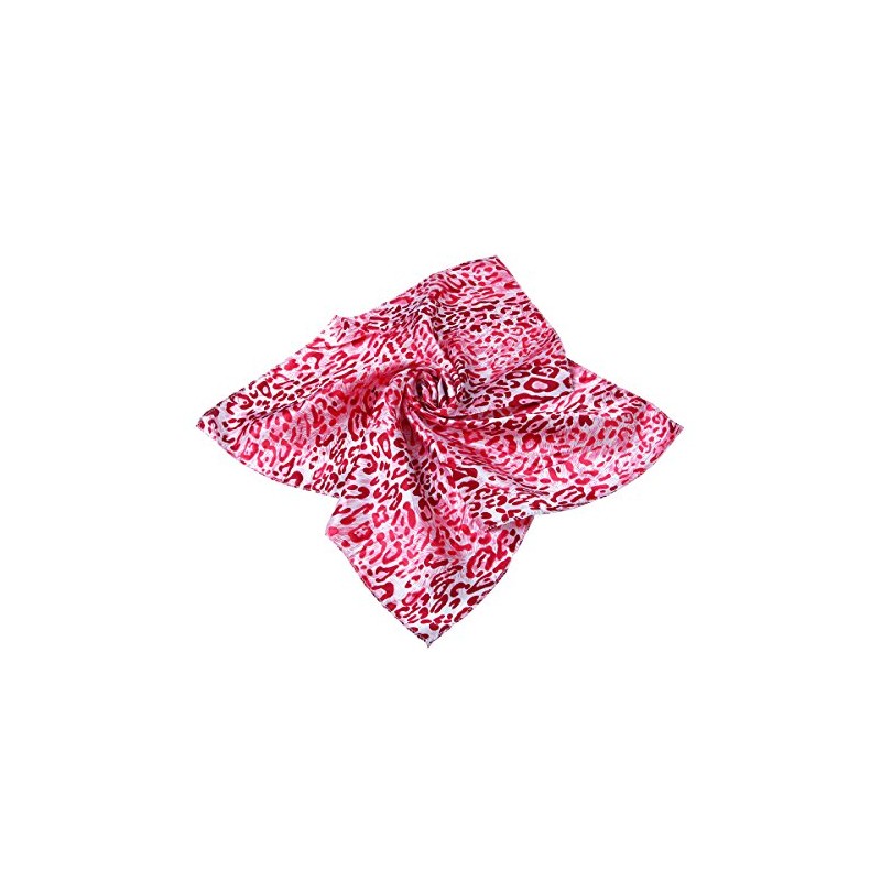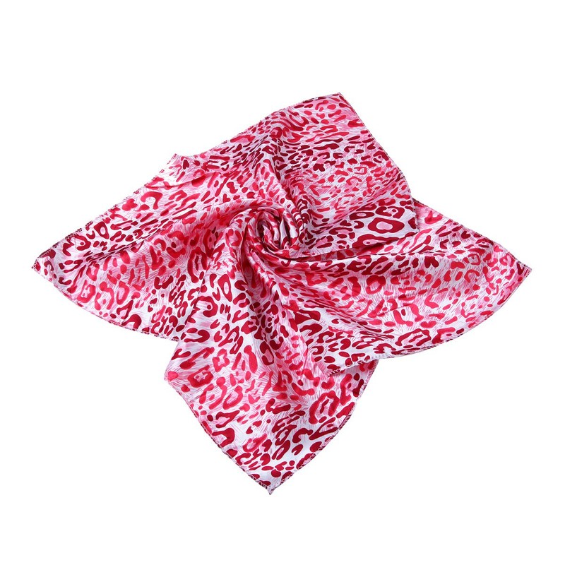 Premium Silk Feel Animal Print Square Satin Scarf, Red Leopard