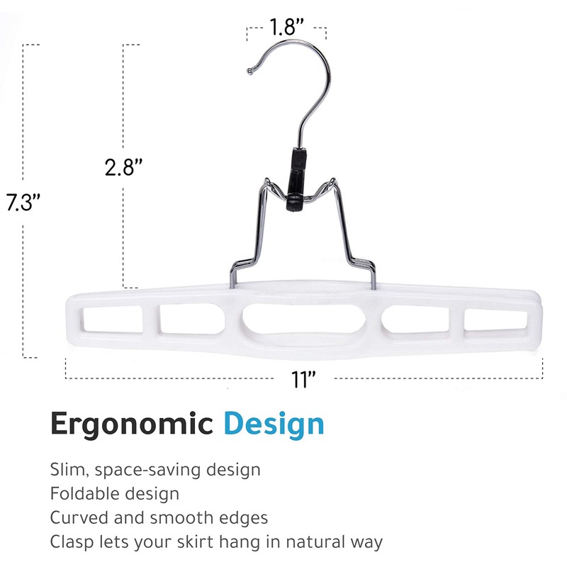 - ✅ EQUIP YOUR BEDROOM OR NURSERY CLOSETS: Offered in classy White, these durable plastic skirt hangers will look great in your bedroom, kids' room and guest room wardrobes. Add style to your home or hotel closets!