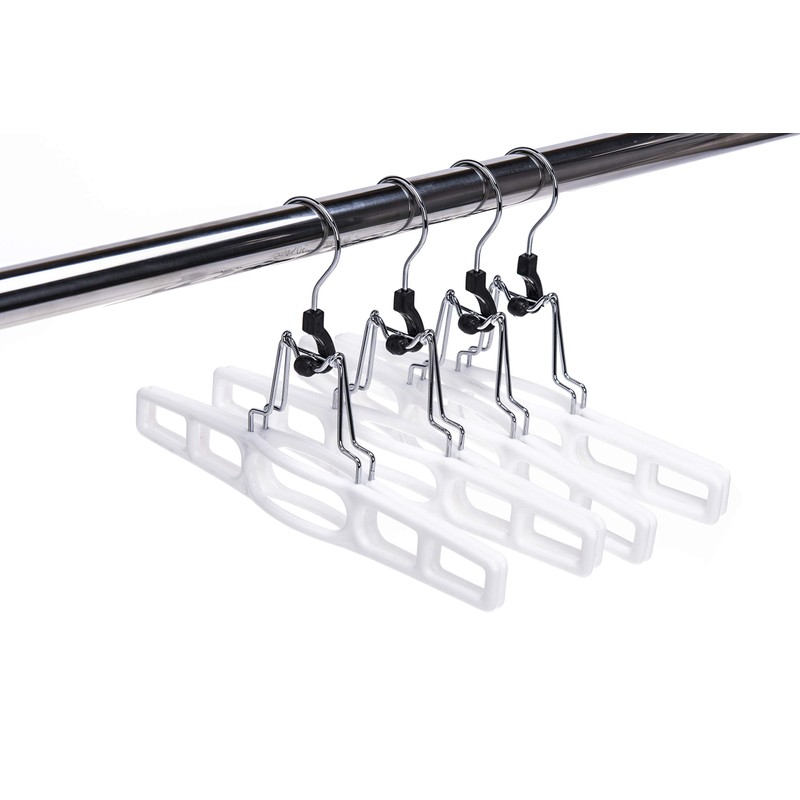 The Quality Hangers has released a high-end set of 10 white plastic skirt hangers with clasps that will revolutionize your closet organization!