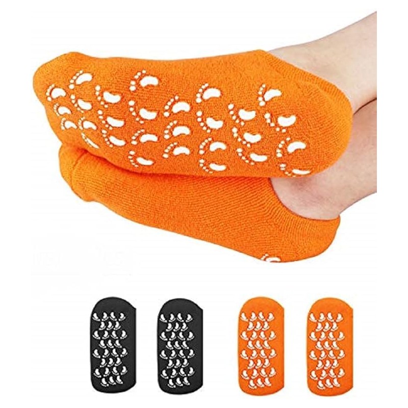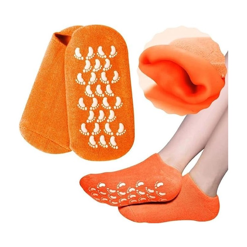 Premium Socks Moisturising Sock Gel Sock Soft Moisturising Gel Sock to Retain Moisture and Reduce Dryness Provide Hydration to Dry Crack Heel and Foot with Vital Oil and Vitamins (Orange)